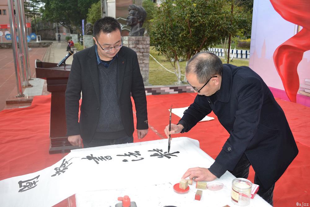 教师代表现场展示毛笔及硬笔书写作品